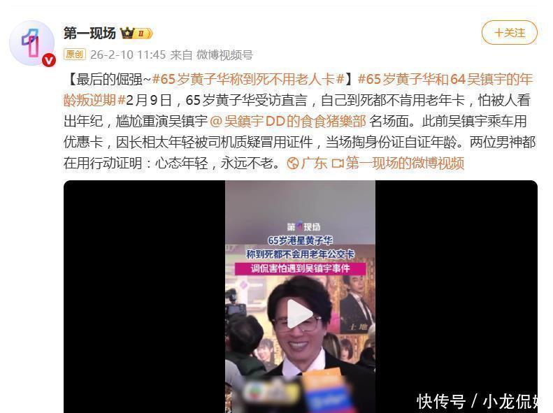 据2月10日报道,65岁的香港明星黄子华在采访中一句“到死都不肯用老年卡”,直接引爆网络。这可不是简单的吐槽,而是精准踩中了无数人关于“年龄标签”与“心态年轻”的敏感神经,顺便还把好友吴镇宇的尴尬名场面送上了回放热榜。