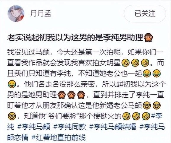 更何况,以李纯的外貌条件和行业影响力,找个资源更雄厚、财富更多的伴侣似乎轻而易举。